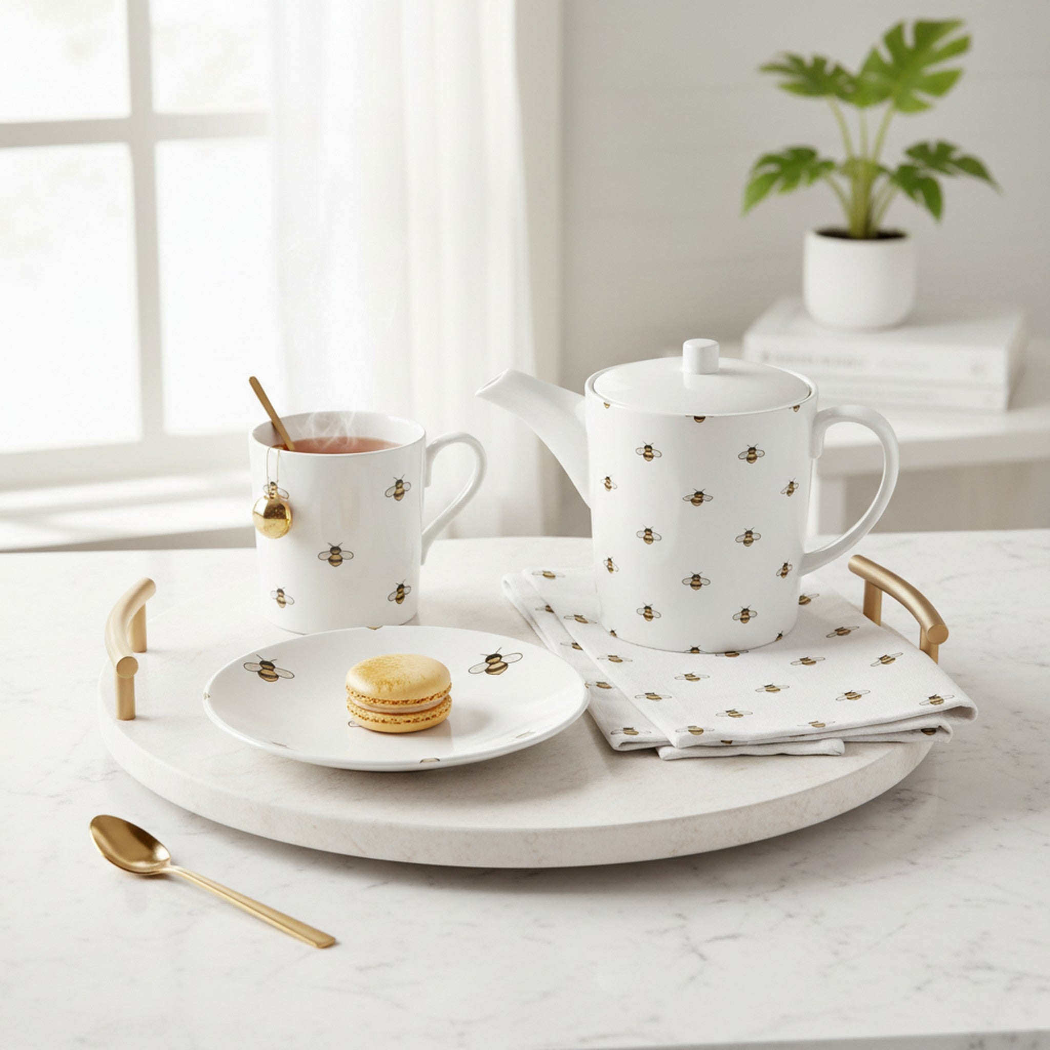 Monaco Gold Tea Pot - Elegant Fine Bone China Teapot with Delicate Design